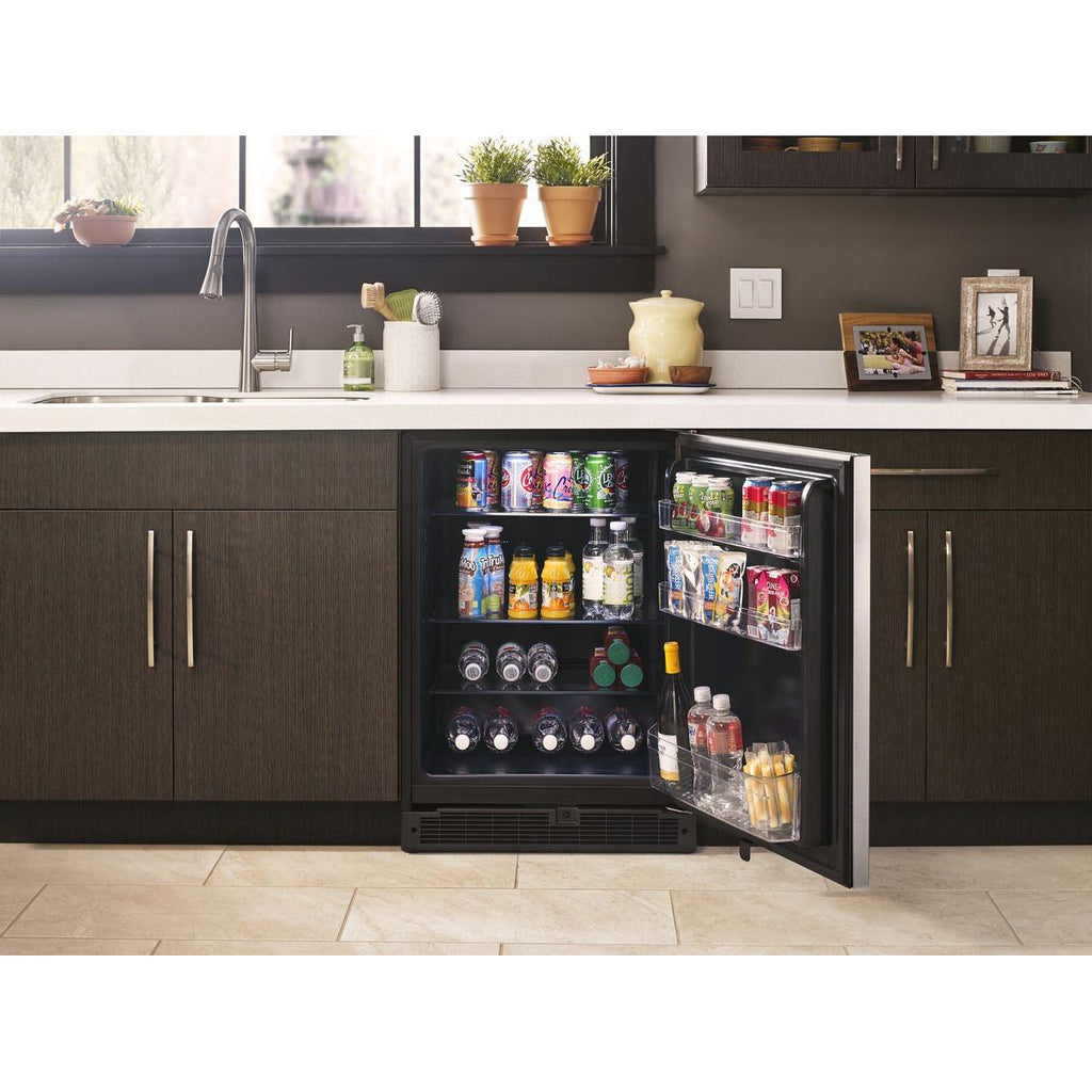 Stay organized with purposeful spaces for any item. This undercounter 5.1 cu. ft. refrigerator features fingerprint-resistant stainless steel that makes... Stay organized with purposeful spaces for any item. This undercounter 5.1 cu. ft. refrigerator features fingerprint-resistant stainless steel that makes it easy to clean. LED interior lighting keeps food looking as good as it tastes, and this undercounter fridge has a temperature sensor alert to makes sure drinks stay cold. View more